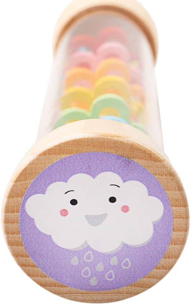 This adorable wooden Rainmaker recreates the soft sound of rainfall. As you turn the instrument, the colourful beads will cascade through the tube, creating fascinating sounds and visual effects.