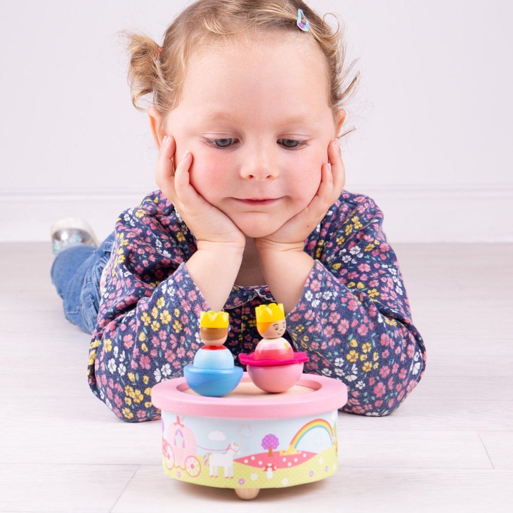 Wind the royal fantasy characters up and watch them go to the musical tune in our adorable Fantasy Music Box. This delightful wooden music box features a Prince and Princess who dance, wobble and spin to the tune of Small World, providing hours of fun.
